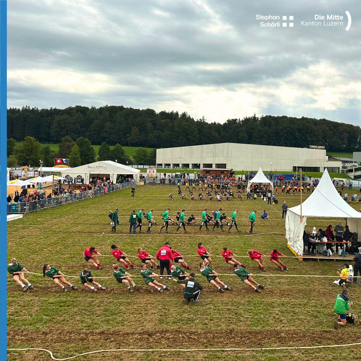 Spannende Moderation der 4-tägigen Seilzieh Weltmeisterschaft 2023 in Oberkirch/Sursee.
